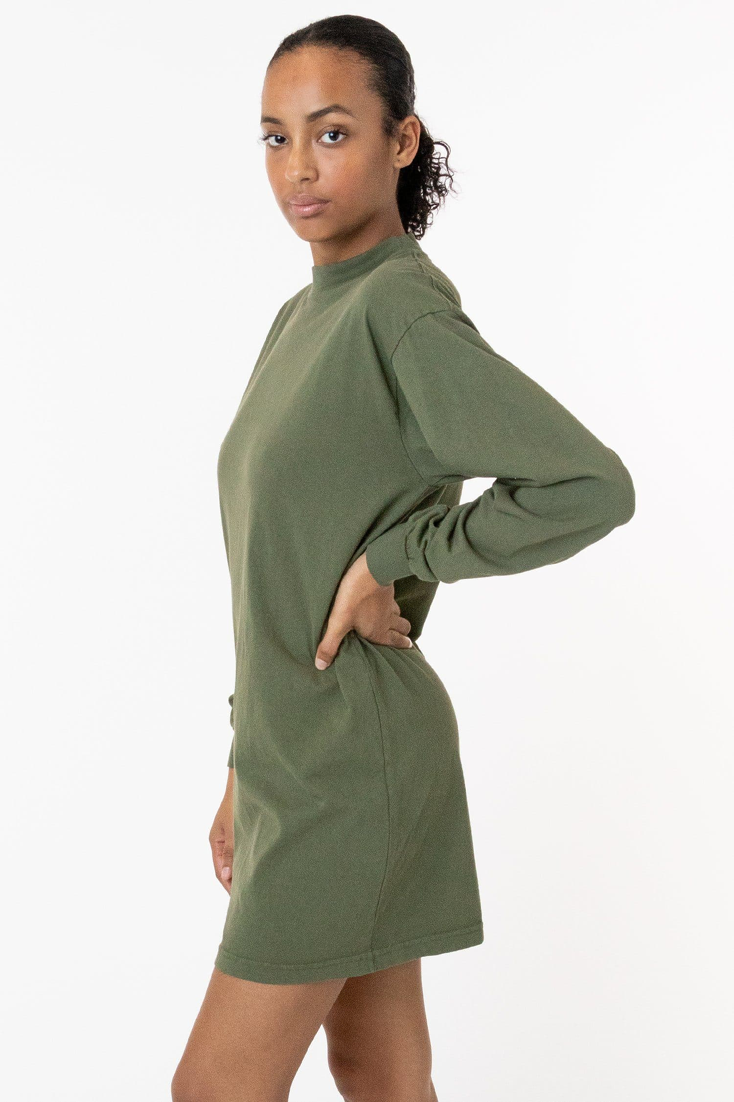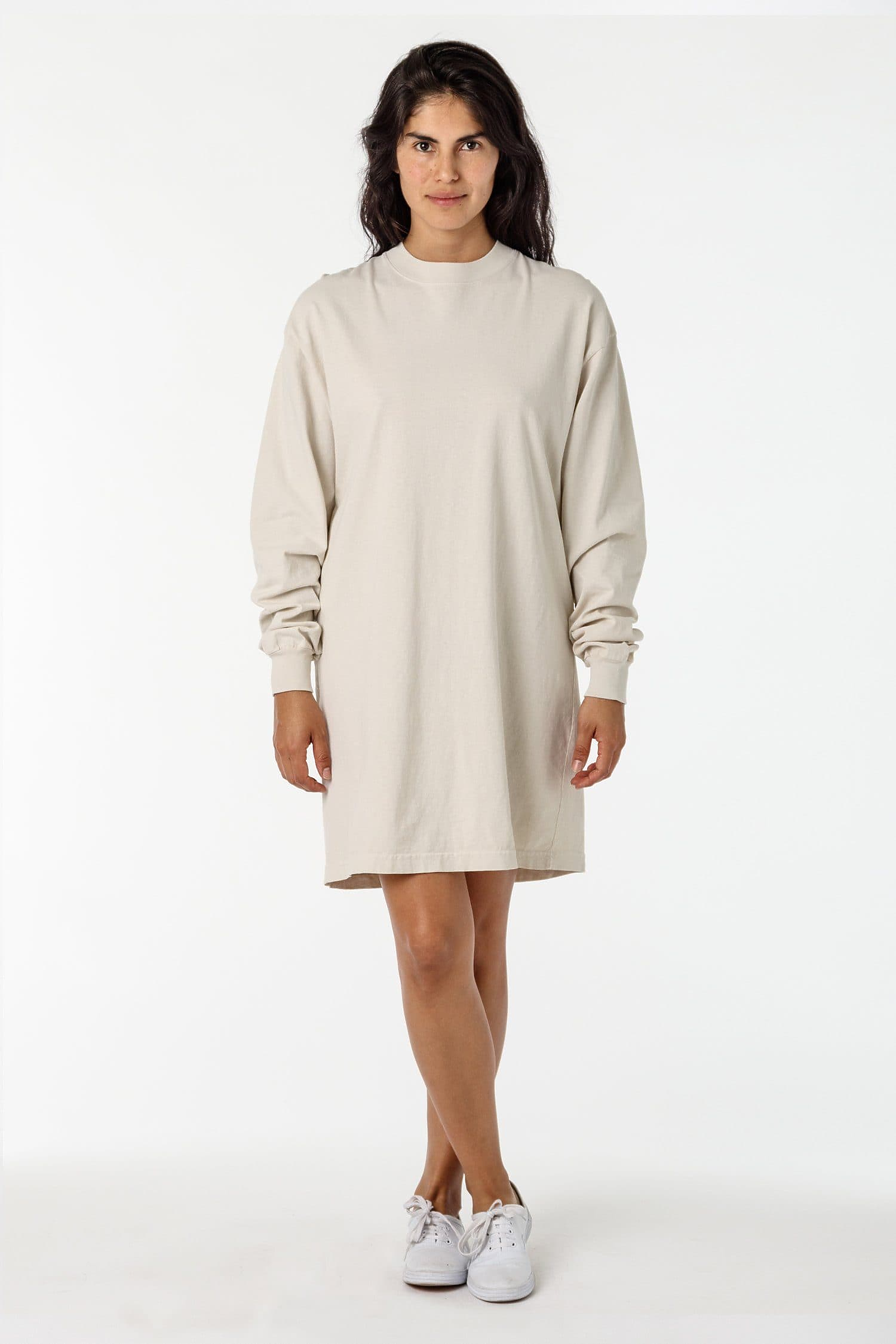 Thick, long-sleeve T-shirt Dress with a higher neckline and a comfortable loose-fitting silhouette.